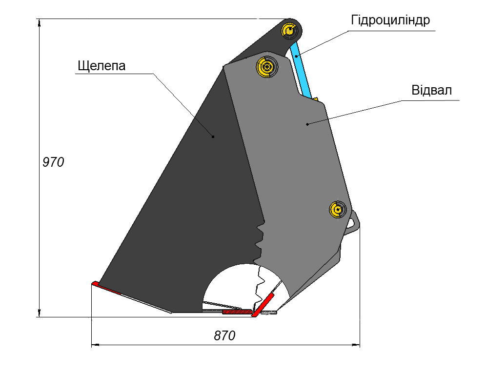 The jaw bucket is easy to operate and has a good kickback. Easy operation is guaranteed by two hydraulic cylinders. You can be sure that this bucket will serve you well and for a long time.