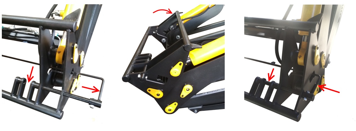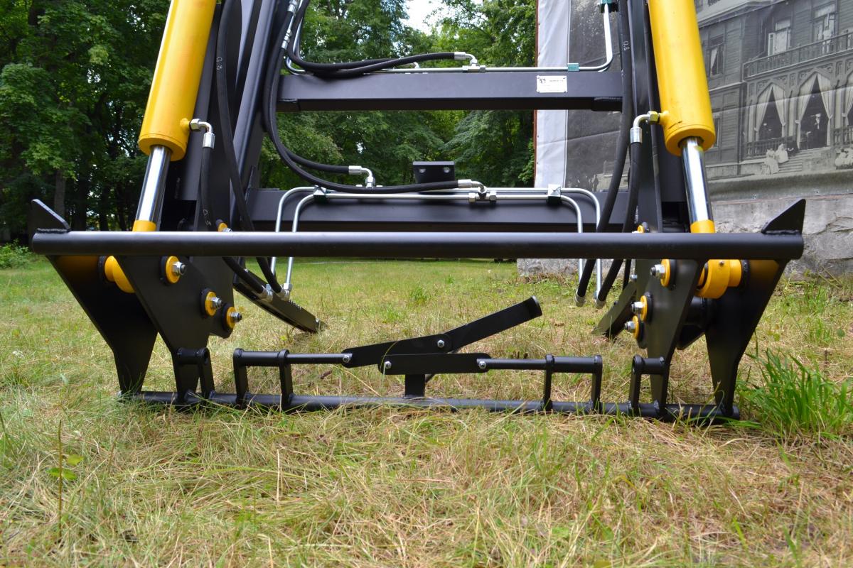 Навесной инструмент фиксируется одним движением руки при помощи запирания специального замка. Для защиты машины от перегрузок установлен специальный клапан, с помощью которого сбрасывается лишнее давление. За параллельный подъем съемных механизмов отвечает специальный механический параллелограмм. На таком фронтальном погрузчике гидроподъемник устанавливается без использования дополнительного дорогостоящего оборудования, что делает этот механизм конкурентоспособным в ценовом отношении и удобным в эксплуатации. Работу гидроподъемника без образования люфта обеспечивает специальное клиновое соединение его с несущей рамой.